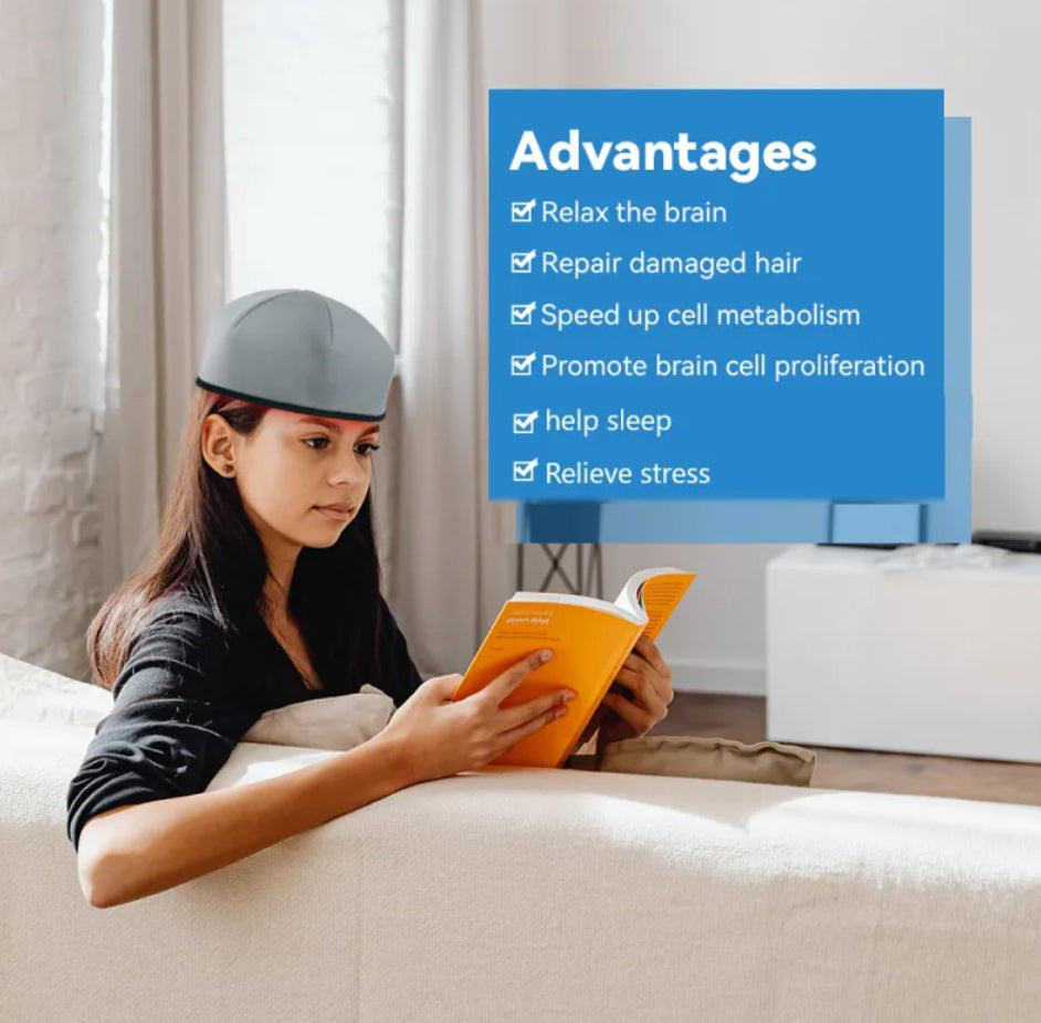 The red light therapy cap can promote the proliferation of brain cells. Accelerates cell energy metabolism, relaxes the brain, improves the effect of treating brain diseases, and relieves insomnia. Headache symptoms, etc. It also reduces scalp oil production, reduces hair fall, promotes hair growth, restores a healthy cycle of hair growth, and repairs damaged hair.
